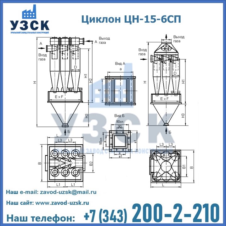 Завод «УЗСК» в Петропавловске-Камчатском предлагает большой выбор циклонов ЦН-15-800×6СП и прочих устройств, полностью укомплектованных и готовых к эксплуатации. Мы гарантируем соответствие оборудования всем требованиям ГОСТ и ТУ, износостойкость и высокую производительность предлагаемого оборудования. Уральский Завод Стальных Конструкций изготавливает и продает надежное, эффективное и производительное оборудование, имеющее длительную гарантию и большой эксплуатационный ресурс. Если требуется изготовить циклон нестандартных размеров, то такой вариант выполнения заказа тоже предусмотрен, так как предприятие имеет собственные производственные площади и надежных поставщиков. На все поставляемое или производимое оборудование имеются чертежи и прочая техническая документация. Заказать и купить циклоны или прочее оборудование высокого качества и по доступной цене можно через наш сайт или по указанному в разделе «Контакты» телефону.