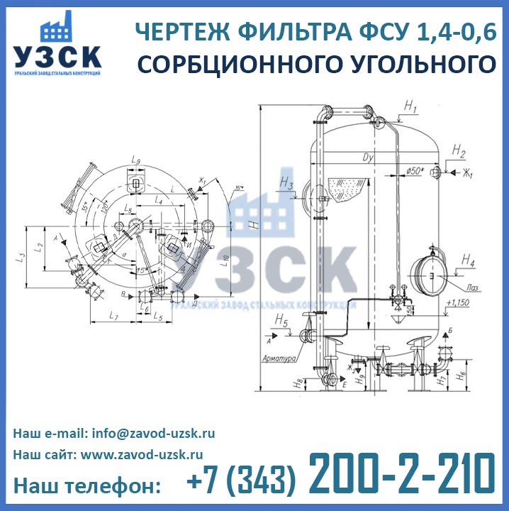 Если вы ищете фильтры ФСУ-1,4-0,6 в Петропавловске-Камчатском от изготовителя, то Вы на правильном пути! Уральский завод стальных конструкций – непосредственный производитель сорбционных фильтров ФСУ, предлагающий самые выгодные цены на ФСУ-1.4-0.6 в Петропавловске-Камчатском. По окончании процесса производства угольные фильтры проходят гидравлические испытания пробным давлением 0,9 МПа на аттестованном гидростенде, находящимся в собственности завода УЗСК. Мы гарантируем высокое качество выпускаемой продукции, и в этом уже убедились ведущие предприятия промышленного сектора России и стран ЕАЭС (см. раздел «Наши клиенты»).